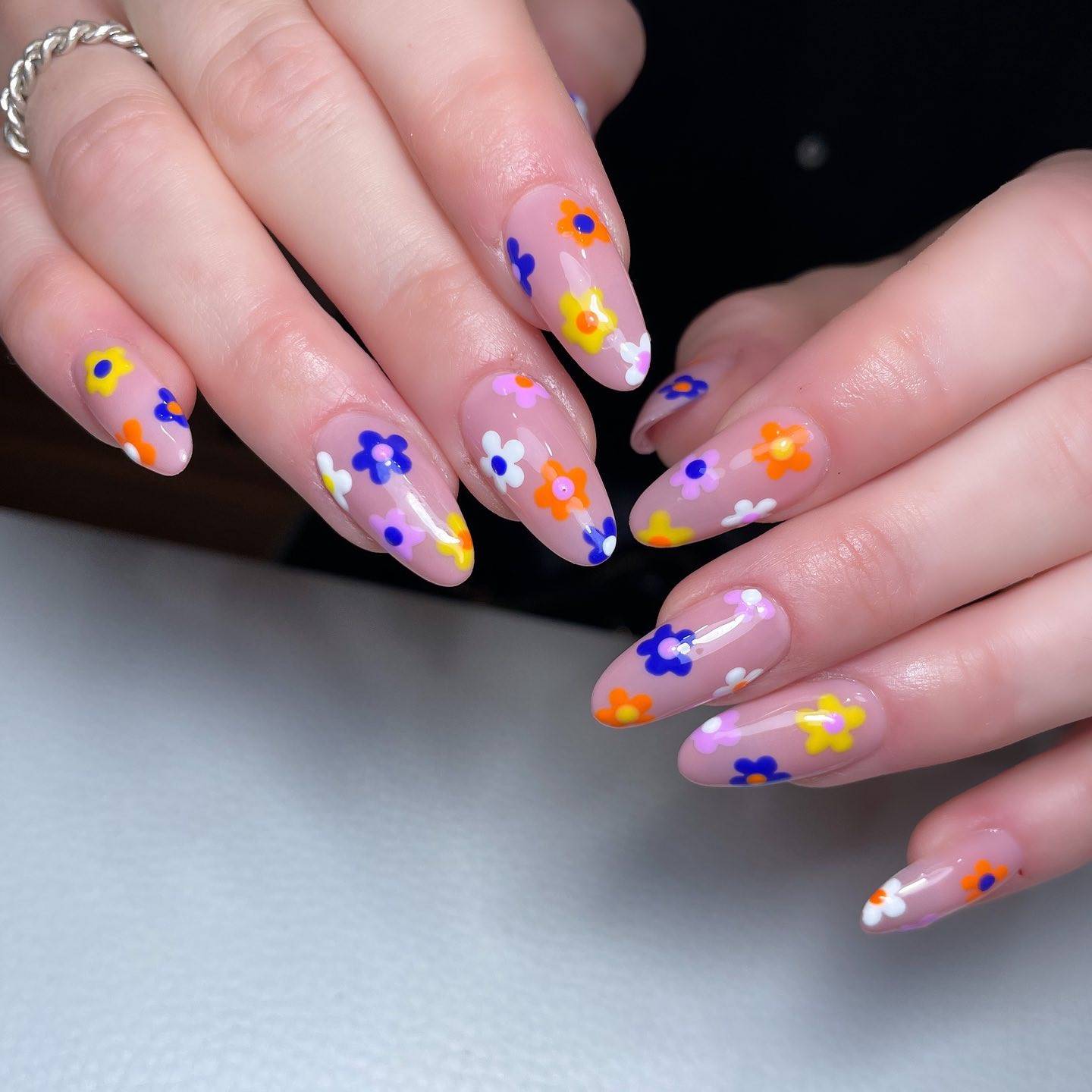 - Uñas decoradas con diferentes estampados: flores, líneas, animal print...
