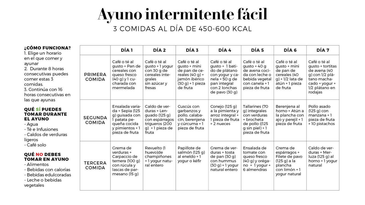 Menú semanal del ayuno intermitente